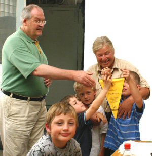 John Hopkinson, followed to the right by MIRIM coaches and loco.